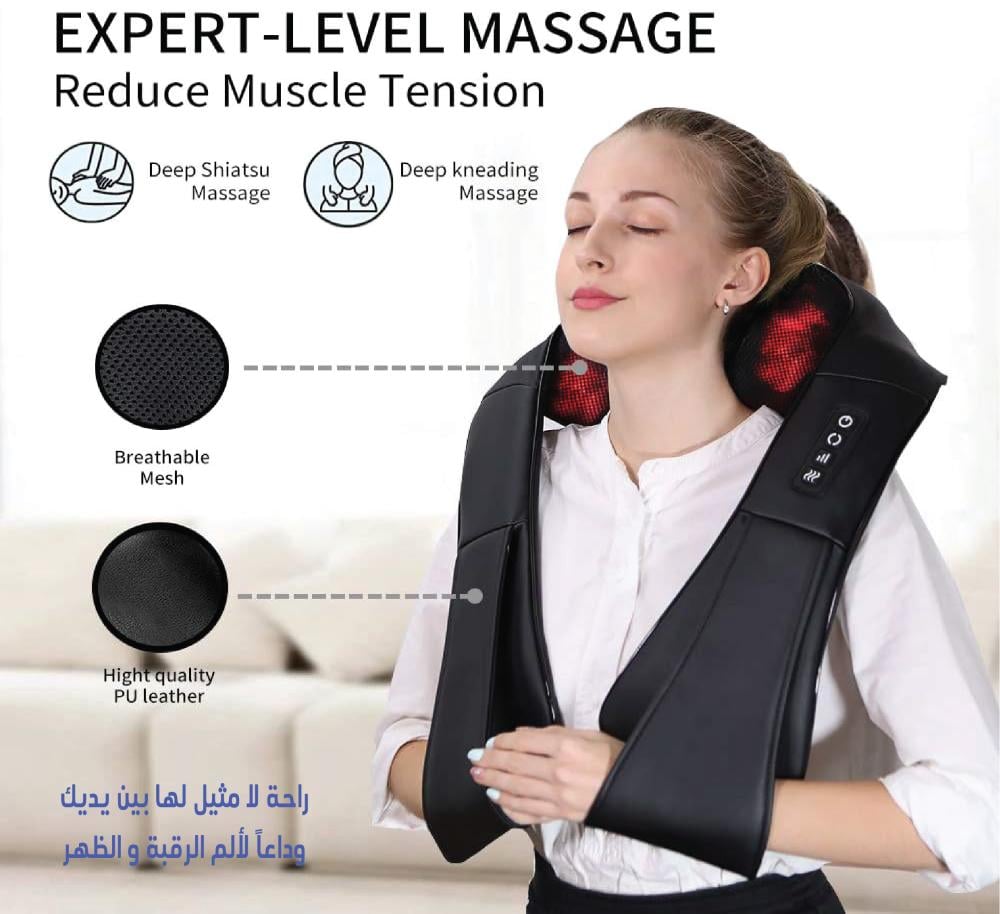 حول هذا المنتجوظيفة تسخين متقدمة: يساعد جهاز تدليك الرقبة والكتف المُدفأ على تهدئة العضلات المُرهقة وتقليل التوتر، كما يُعزز النسيج الشبكي المُسامي نفاذ الحرارة ويسمح بحركة مرنة لعُقد التدليك. لا حاجة لمحول سيارة.تخفيف آلام العضلات والآلام الحادة: بفضل 8 عُقد تدليك عميقة، يُمكن لجهاز تدليك الرقبة لدينا أن يُساعد في تخفيف آلام العضلات، وتيبس الرقبة، والتخلص من التعب المُستمر، والاسترخاء بعد يوم عمل طويل.ثلاث سرعات: يحتوي على 3 خيارات لمستويات القوة، تُتيح لك اختيار الضغط المُناسب لاحتياجاتك لتخفيف آلام العضلات. يُمكنك أيضًا ضبط وضعية التدليك وشدته عن طريق تحريك حزام المقبض. يُعطي نتائج رائعة في جميع أنحاء جسمك من الرقبة إلى أصابع القدم.سهل الاستخدام وآمن: مُدلك الكتف لدينا مُزود بحماية من الحرارة الزائدة وميزة إيقاف تلقائي لمدة 15 دقيقة لضمان السلامة. يمكنك تشغيل أو إيقاف الحرارة عند الرغبة للحصول على تدليك مريح للغاية حسب احتياجاتك.مادة متينة وصديقة للبشرة: هذا الجهاز الكهربائي الكلاسيكي لتدليك الرقبة مصنوع من جلد البولي يوريثان عالي الجودة ونسيج شبكي يسمح بمرور الهواء، مما يتيح لك الاستمتاع بتدليك مريح. سهل الاستخدام والتنظيف. مُخفف رائع للتوتر وهدية مثالية لعائلتك وأصدقائك.