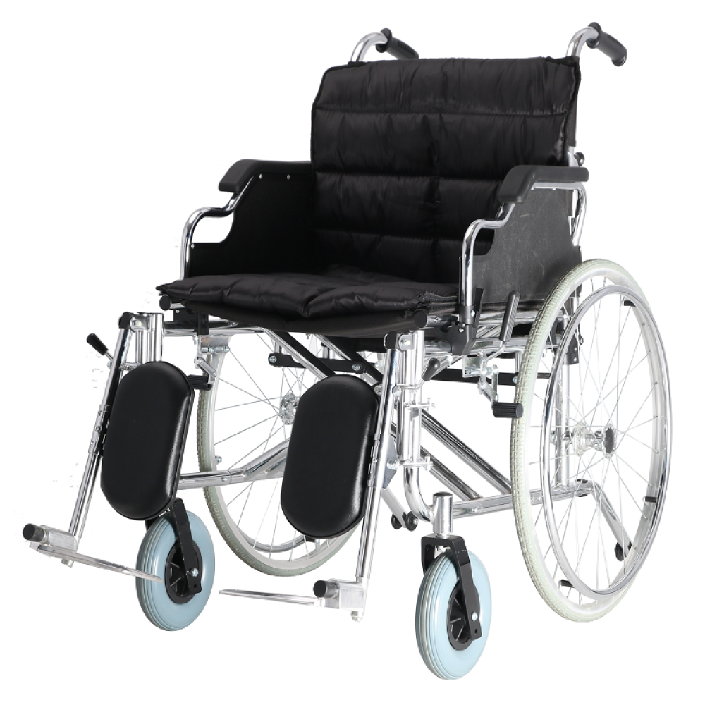 وصف كرسي متحرك لكبار السن :كرسي متحرك عالى القوة , ثقيل من الفولاذ المقاوم للصدأ للمستخدمين الوزن يصل إلي 125 كجممميزات الكرسى :1- إطار من الصلب المطلي بالكروم المقاوم للصدأ فقط وحصرى على بى كير2- تصميم مريح يعتمد علي الأنحاء النفسي للخصر البشري مما يوفر للمستخدمين أقصي قدر من الراحة3- مسند ذراع PU قابلة للأنفصال قابلة للفصل مع مساند رفع قابلة للفصل مما يوفر حجم العبوة4- تبديل المكابح مما يتيح للمستخدمين إيقاف الكرسي المتحرك بسرعة وسهولة وأمان5- كرسي متحرك قابل للطي لسهولة النقل والحمل ف مساحة أقل6- وسائد PU متنية ومريحة ومسند ظهر فقط وحصرى علي زد ميد 7- عرض المقعد يصل إلي 56 سم لمختلف المستخدمين8- متنية وممتصة للصدمات وعالية الصيانة 5 بوصات9- العجلات الخلفية متنية وممتصة للصدمات وخالية من الصيانة مقاس 24 بوصةتسوق مجموعة متنوعة من الكراسي الطبية لكبار السن من خلال متجر زد ميد للمستلزمات الطبي2-1